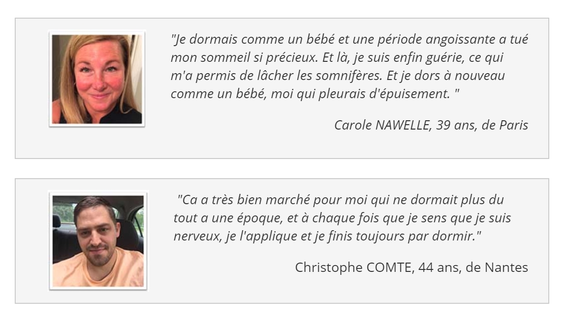Comme vous l’avez probablement déjà remarqué … Destination Sommeil est un programme efficace et facile à suivre … Et aussi, les résultats arrivent vite … parfois même la première nuit.